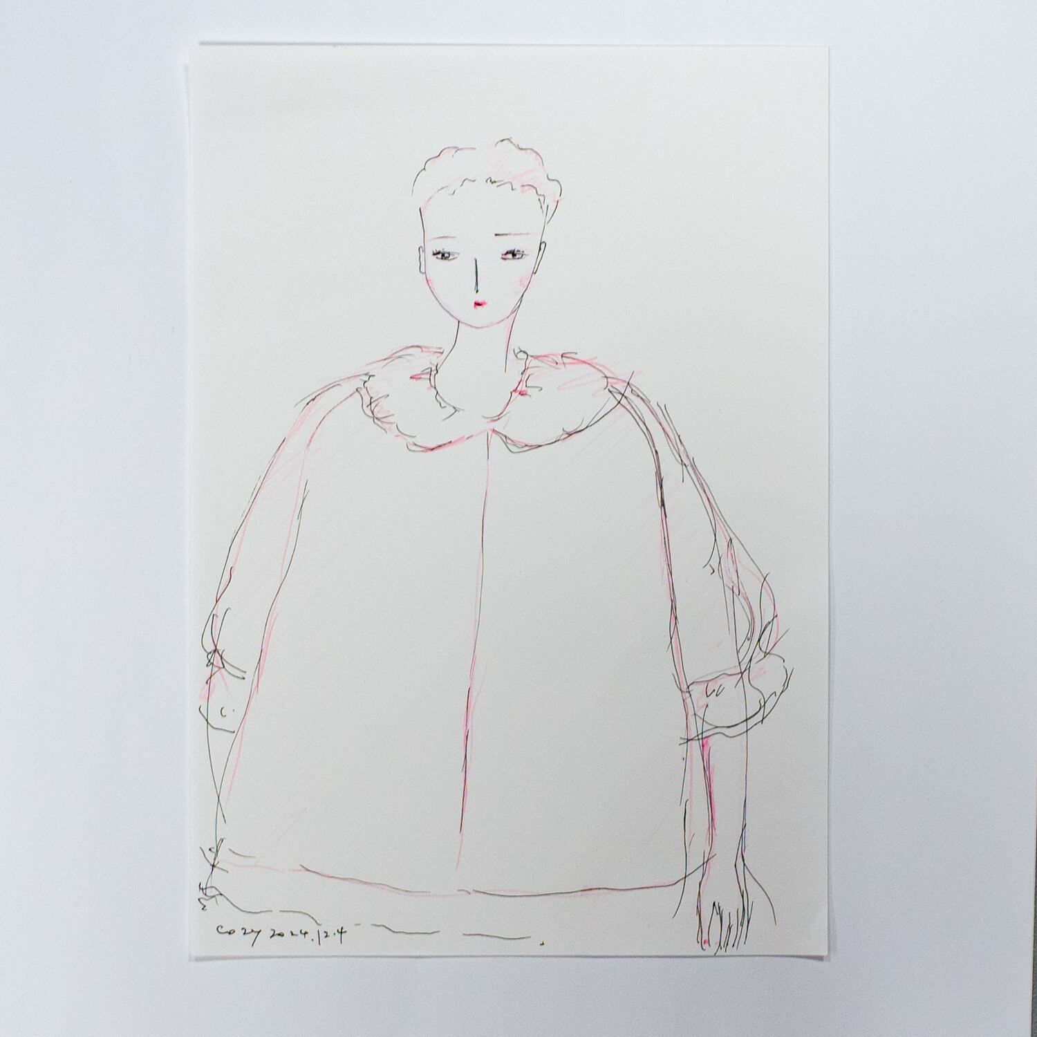 画材 紙に色鉛筆 製図ペン